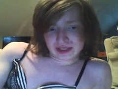 Nice sissy jerks off on her own face