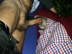 Daddy bear sucking cock in forest