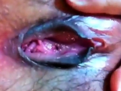 Erotic cutie is spreading narrowed vagina in close-up and cl