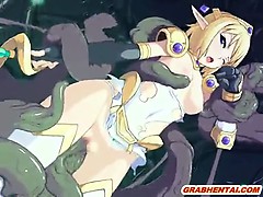 Cute hentai Elf caught and hot drilled wetpussy by tentacles