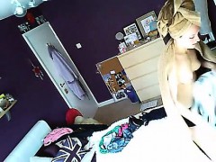 Blonde caught coming out of the shower and dressing on hidd